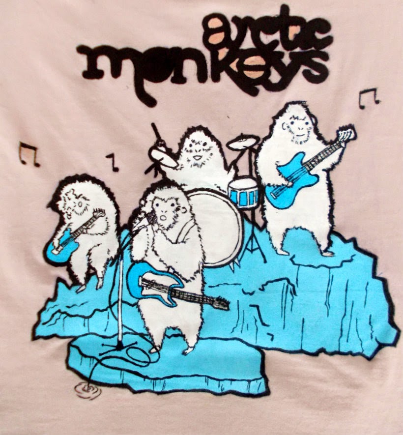 Mam trochę zaległości w prezentowanych rzeczach, ale dziś zrobię post o tematyce koszulkowo-butowej muzycznej. Zainspirował mnie openerowy lans (w końcu się wybieram!) i stwierdziłam, że na koncercie Arctic Monkeys chcę się poczuć jak prawdziwa psychofanka. W sumie jest to jeden z czołówki moich ulubionych zespołów - nie godzi się więc nie mieć jakiegoś znamiona z tej okazji. Chociażby koszulkowego. :)