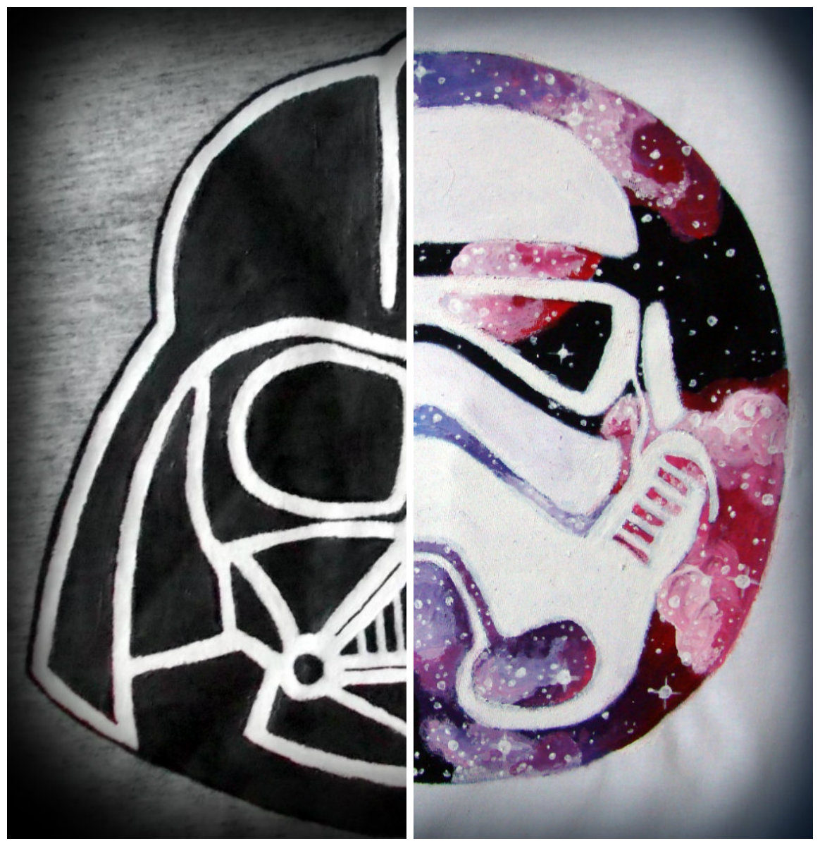 Dziś StarWarsowo. Myślałam, że nigdy się nie odkopię z zamówień, ale wreszcie wyszłam na prostą. Z zaległości została mi już tylko czapka z daszkiem (beware! :D). Więc jakby ktoś miał chęć - można zamawiać. (zuziami@gmail.com). Ostatnio wstawiłam też parę projektów koszulkowych na fanpejdżu, zapraszam do przeglądnięcia. Niebawem zrobię z nimi posta. :) Krótko i na temat: dwie męskie koszulki. Jedna ze Szturmowcem, druga z Darth Vaderem. Enjoy.